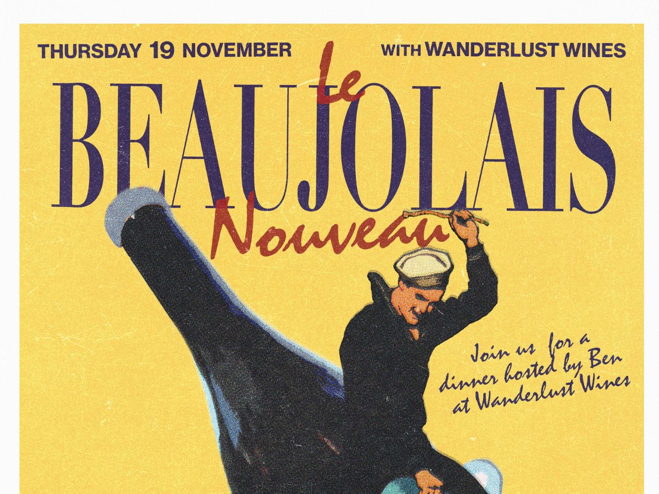 This year, we’re teaming up with Wanderlust Wine to bring the celebration to Harbour House. Join us on Thursday 19th November for a French-inspired evening hosted by Ben from Wanderlust, who’ll be on hand to talk all things Beaujolais.